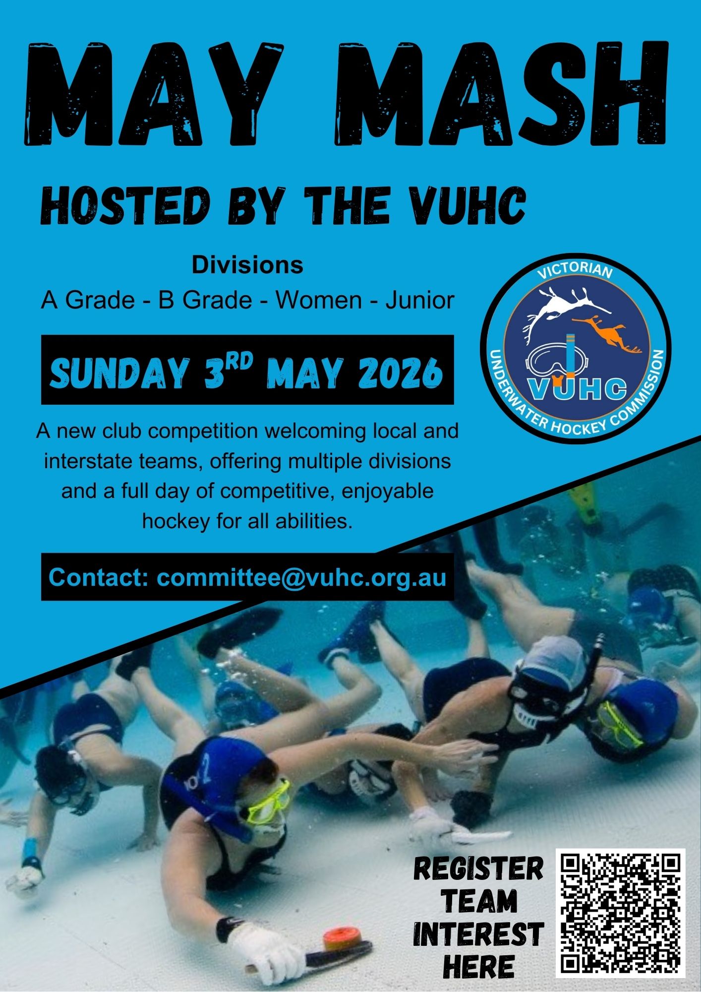 This new club competition is open to local and interstate teams. With multiple divisions, the event will cater to all abilities and provide a fun day of exciting, fast-paced underwater hockey for players at every level.